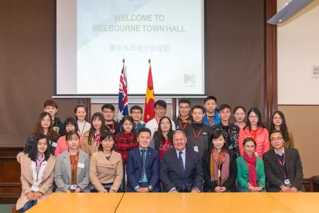 2017年19名InSPIRE国际生参观墨尔市政府与墨尔本市市长合影