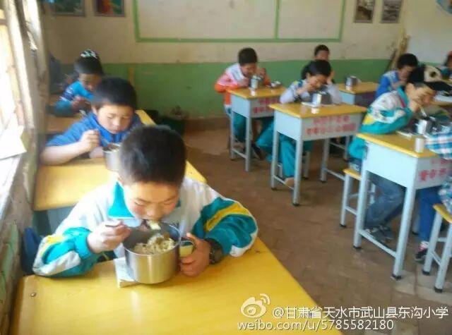 东沟小学“免费午餐”正式开餐后,学校已经将当天花销从学校微博公示给社会监督,同时给基金会也发来开餐照片。欢迎所有捐款人关注“免费午餐”的微博,随时关注孩子们的情况(学校微博:http://weibo.com/u/5785582180)